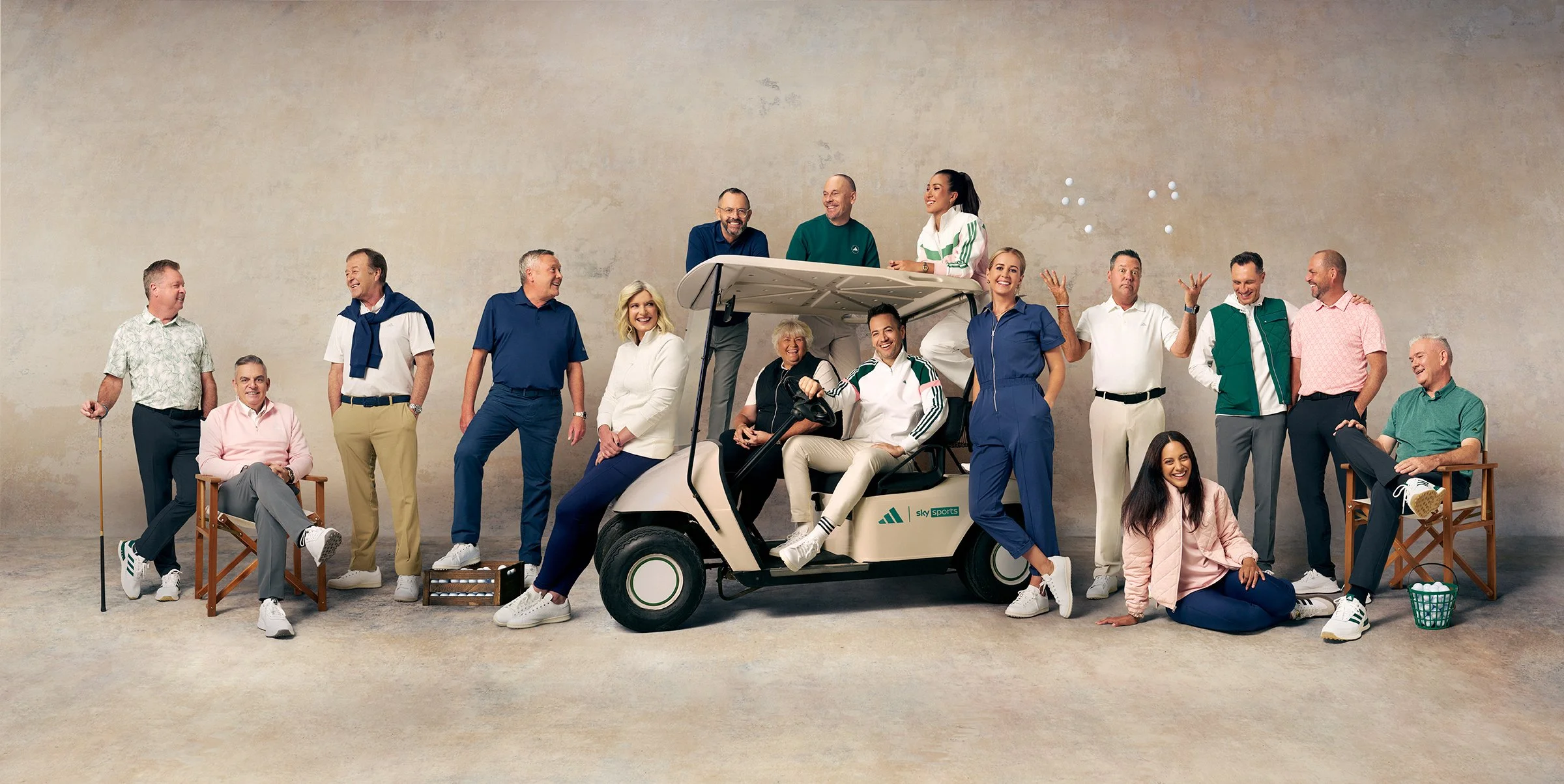 We shot 16 members of the Sky Sports Golf team in a personality-packed shoot, creating a hero campaign image, individual talent portraits and a BTS launch video. Our creative direction for the shoot was to bring out the individual characters of the team whilst reflecting the fun and family-esque feel that comes across in their broadcasts.